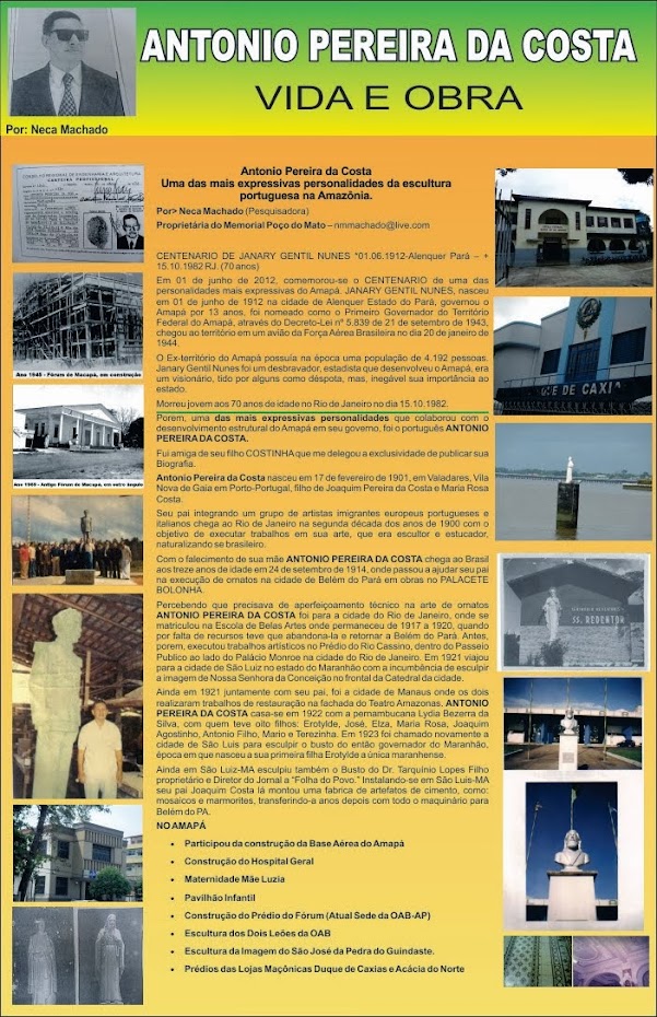 Como Jornalista Colaboradora com DRT-AP PUBLIQUEI MATERIA SOBRE A VIDA E OBRA DE ANTONIO PEREIRA DA COSTA